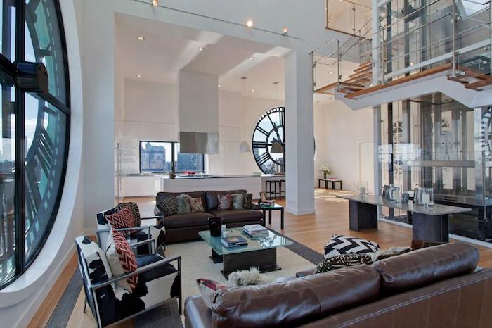 Located in Brooklyn’s Dumbo district this swanky bachelor paid consists of fifty-foot ceilings and these beautiful 14-foot clock face windows scattered around the pad which are all synced with one another. Not only do they make for great windows but you’ll never lose track of time wherever you may be.